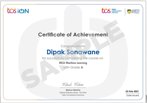 MACHINE LEARNING TCS iON 1 year
